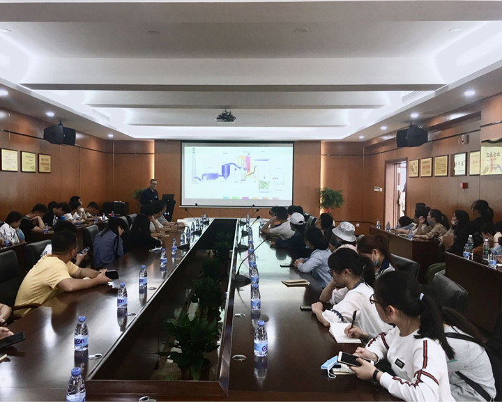 現場參觀後,崔鵬總經理助理在會議室為學生們播放了公司宣傳片,通過工藝流程動畫讓大家係統地了解了垃圾焚燒最終產生清潔電能、實現變廢為寶的整個過程,以PPT方式為大家介紹了莆田廠的發展曆程以及特色,並積極與學生們互動。