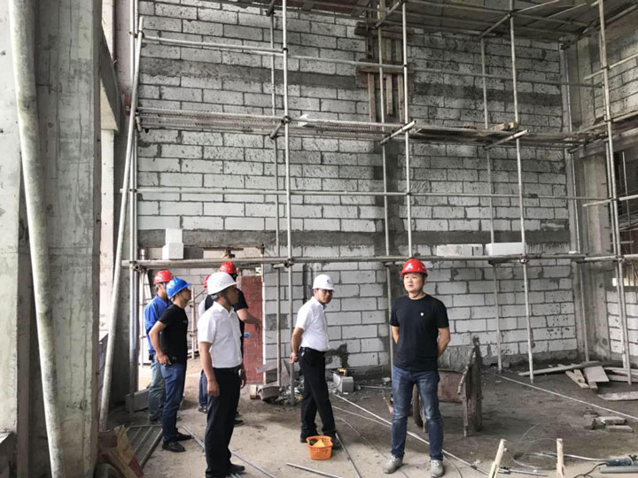 zaixiangmushigongxianchang,chengfuzhanchangyixingtingqulebeifengwushuichulichangtibiaogaizaoxiangmufuzerenchenzhifangjishigongdanweixiangmujinglichenzhifengguanyugongchengzhilianghexianchangshigonganquanwenmingdengqingkuanghuibao。suijichengfuzhanchangshenrudaogegedantijinxingjianzha,tebieshiduishigongqitizhiliang、腳手架的安全防護措施及管溝開挖作業規範更加側重點細致檢查並提出嚴格要求,強調指出:務必按照工程規範標準把控好現場施工質量及安全文明施工,做到安全及質量的問題“零容忍”。