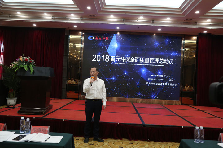 5月12日,汶川地震10周年的特殊日子,聖元環保在濱海酒店6樓召開全麵質量管理總動員大會。