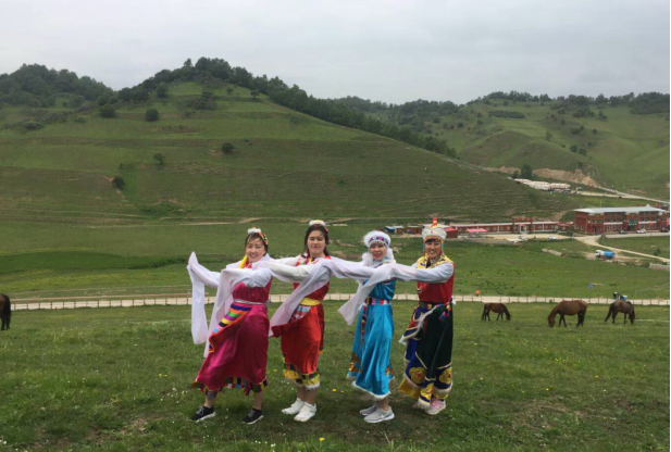 隨後大家一起來到馬場,騎馬感受馳騁草原的快感;愛美的女士換上了民族服飾,在草原上跳起了自創的舞蹈;膽大的同事們,還挑戰了空中飛索,緊張又刺激;草原上的烤羊肉,也帶給我們不一樣的風味。