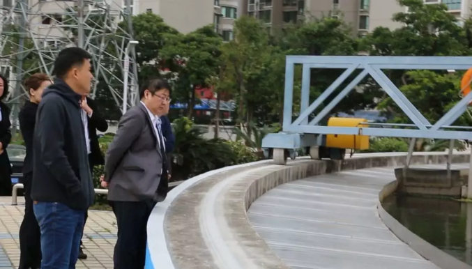 隨後朱大綱市長一行參觀了寶洲汙水處理廠。寶洲廠是泉州最大的汙水處理廠,位於泉州市中心,毗鄰萬達,日可處理生活汙水15萬噸。