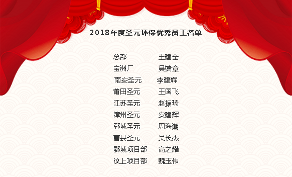 公司對2018年聖元環保先進個人進行表彰,掀起了一波波的熱烈掌聲。本年度共有53人榮獲優秀員工,其中王建全等10人榮獲聖元環保優秀員工;陳天樂等5人榮獲優秀管理者;李錄軍榮獲推行7Sguanlitebiejiang,jiangliyingronghuotuixingquanmianzhiliangguanlitebiejiang,zhaoxiujinronghuotebierongyujiang。gongsilingdaohelaibinqinziweitamenbanjiang,rangwomenyiqijianzhengzherongyushike。