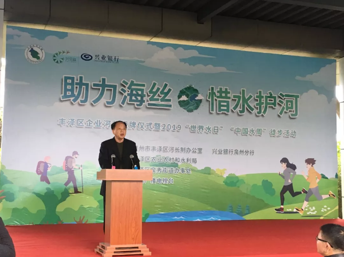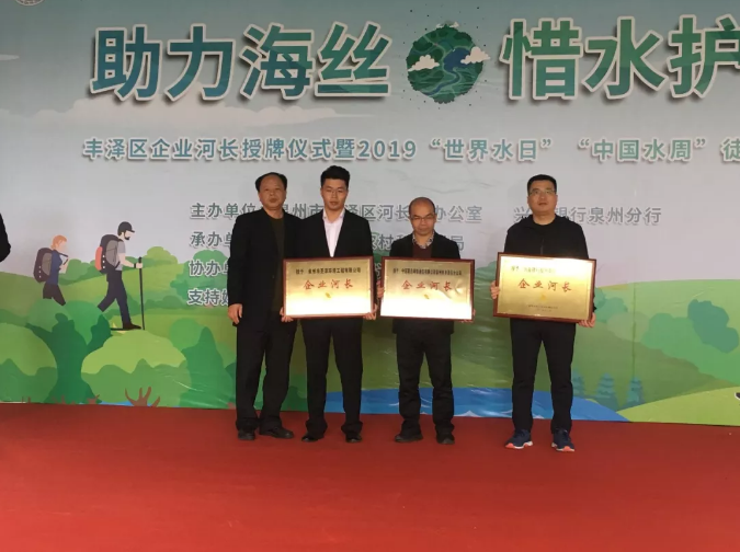 堅持節水優先,強化水資源管理!3月23日,泉州市豐澤區企業河長授牌儀式暨2019“世界水日”“中國水周”徒步活動在泉州北濱江公園沉洲園、汀洲園舉行。