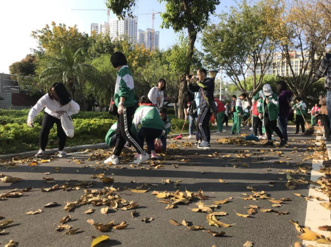 參can觀guan結jie束shu後hou,同tong學xue們men還hai結jie合he寶bao洲zhou汙wu水shui處chu理li廠chang清qing潔jie工gong人ren打da掃sao落luo葉ye實shi況kuang,開kai展zhan環huan境jing清qing理li誌zhi願yuan活huo動dong,用yong實shi際ji行xing動dong表biao達da做zuo一yi名ming環huan保bao實shi踐jian員yuan的de決jue心xin。