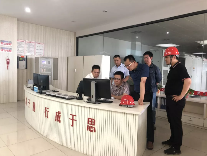 督查組一行在中控室檢查在線監測數據