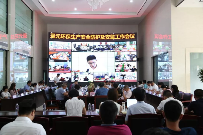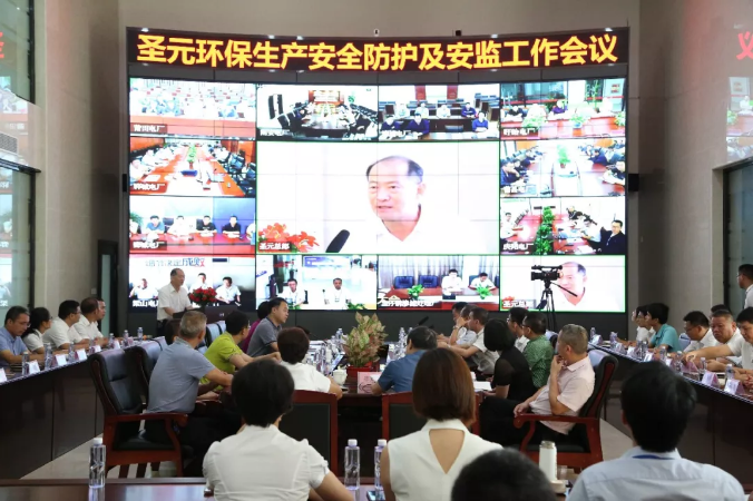 6月29日,聖元環保召開生產安全防護及安全監察工作會議。聖元環保董事長朱煜煊,副總經理朱恒冰、陳文鈺、汪雲保和黃宇、閻愛周等公司在家高層領導,各部室負責人,莆田、南安、漳浦三家省內電廠運營總監在總部數字集控中心主會場出席;各分廠負責人及安全管理人員視頻連線參會。